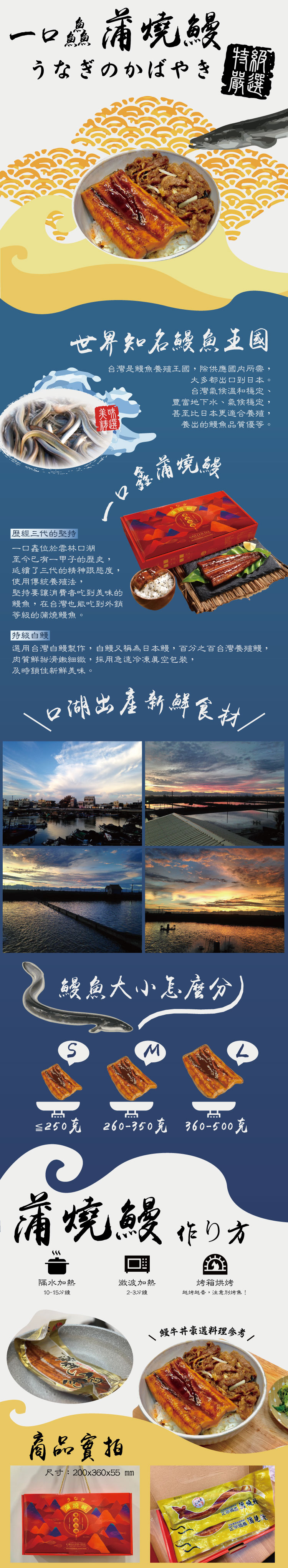 選用台灣白鰻製作,白鰻又稱為日本鰻,百分之百台灣養殖鰻,肉質鮮甜滑嫩細緻,採用急速冷凍真空包裝,及時鎖住新鮮美味。