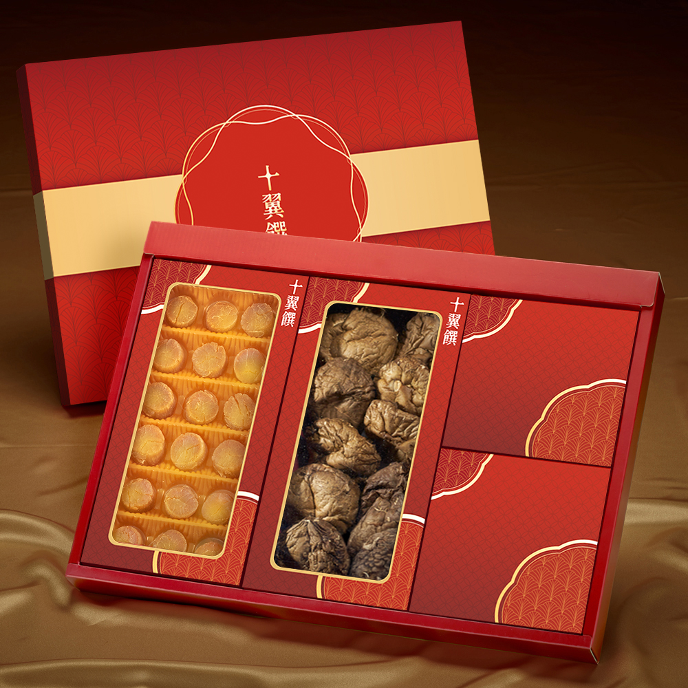 內容物:台灣大香菇 75g、北海道M號干貝 135g、焙香核桃110g、六甲龍眼乾80g(如遇缺貨換焙香杏仁)