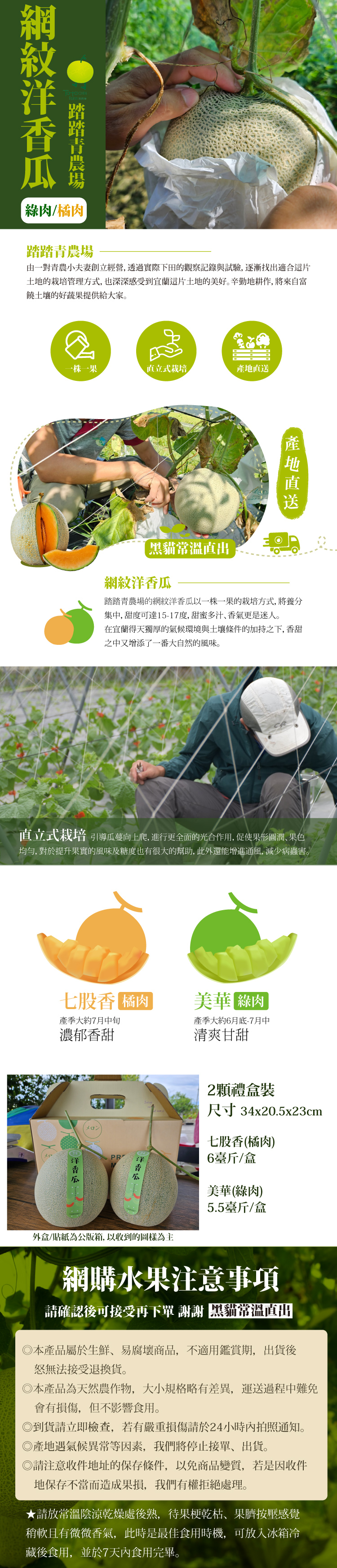 以一株一果的栽培方式,將養分集中,甜度可達15-17度,甜蜜多汁、香氣更是迷人。在宜蘭得天獨厚的氣候環境與土壤條件的加持之下,香甜之中又增添了一番大自然的風味。